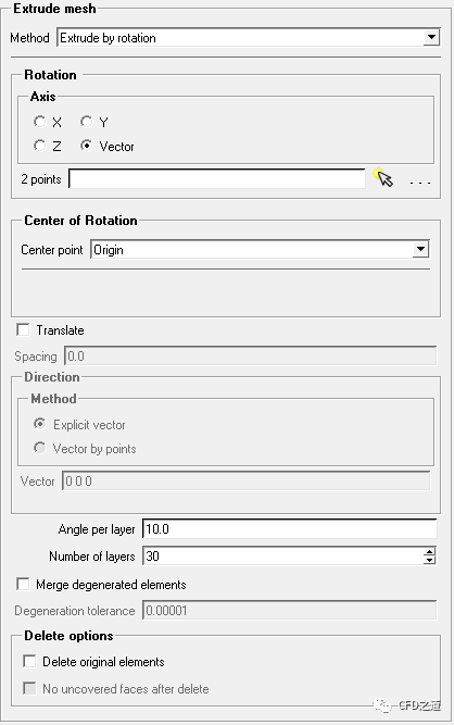 选择Extrude by rotation方法可对指定网格进行旋转。