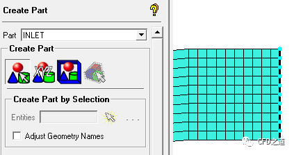 创建part,命名为inlet,并将底部边上的线网格添加至Part中