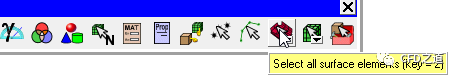 选择浮动工具栏中的Select all surface elements选择所有的面网格,点击鼠标中键将其添加至FLUID中
