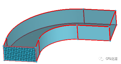 对于此几何的网格划分,完全可以在前面二维网格的基础上沿法向拉伸而得到。不过本实例演示从另一个方向拉伸。