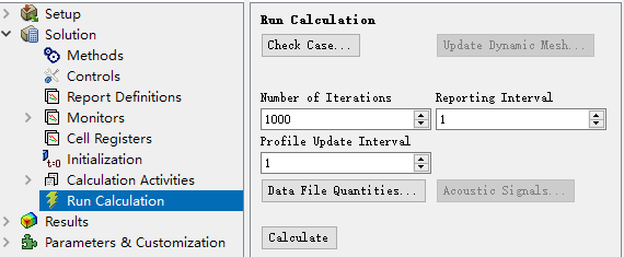 双击模型树节点Run Calculation,右侧面板中设置Number of Iterations为1000,点击按钮Calculation进行计算