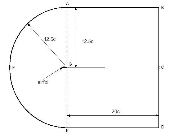 计算域模型如下图所示。其中F、A、E均定义为压力远场边界,C为静压出口边界。