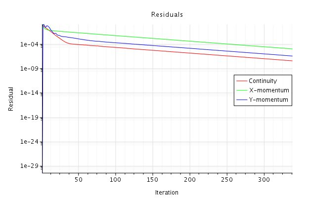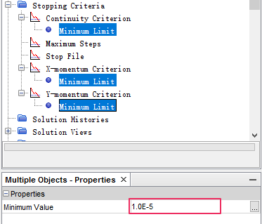 如下图所示,同时选中Continuity、X-momentum、Y-momentum的残差标准,并设置其值为1e-5