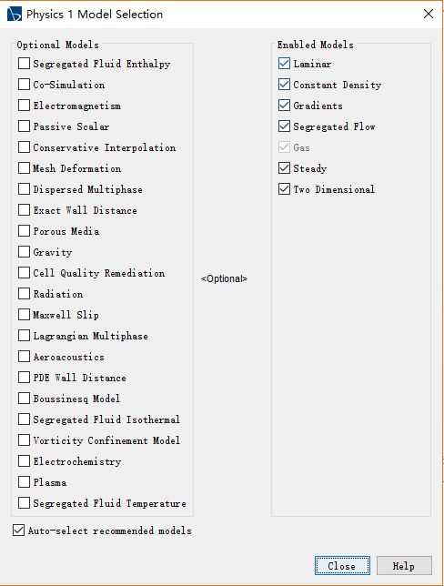 右键选择模型树节点Continua → Physics 1,点击弹出菜单项Select models…,弹出设置对话框