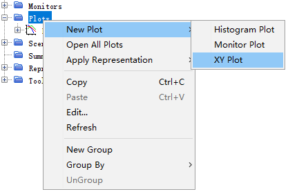 右键选择节点Plots,点击菜单项New Plot → XY Plot创建曲线图