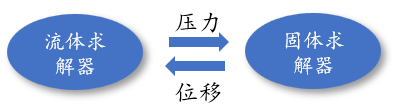 双向传递。例如流体求解器发送压力数据至固体求解器,同时接收固体求解器计算得到的位移数据。如下图所示。