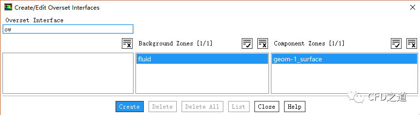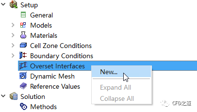 右键选择模型树节点Overset Interfaces,点击弹出菜单项New...新建交界面