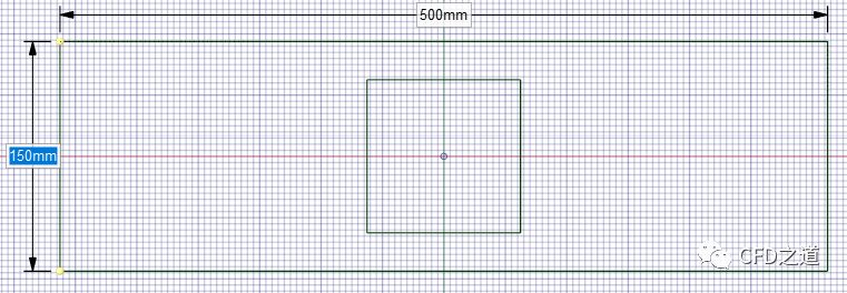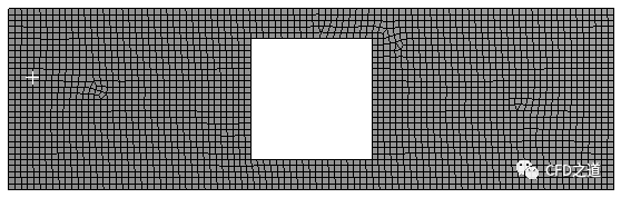 计算模型长3000mm,宽200mm,模型中心有一个障碍物方块,边长100mm。