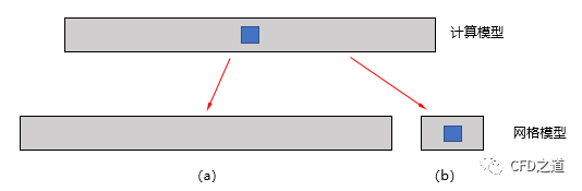 重叠网格需要包含两套网格:背景网格及前景网格。如上图中的网格模型(a)作为背景网格,而模型(b)则作为前景网格。