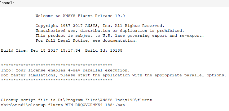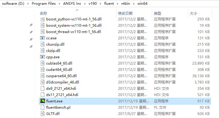 找到Fluent安装路径(根据ANSYS的安装位置不同略有不同,如本机上ANSYS安装在D:Program FilesANSYS Inc,则Fluent安装路径为D:Program FilesANSYS Incv190fluentntbinwin64)