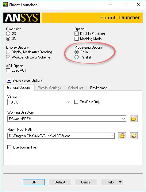 常规的计算无所谓使用并行还是串行,只是对计算速度有影响。然而如果是编译UDF的话,有些UDF如果没有做特殊处理的话是无法在并行下编译的。而且,并行模式启动很慢的有没有,如果是小规模的问题,我们还是希望能在单核下运行,下面的方法能够修改Fluent在串行模式下运行。