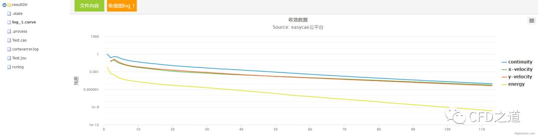 没有实时显示的收敛图,意义并不大,还不如实时显示计算log,就像Fluent计算过程中TUI窗口输出一样。不知道这个实现起来难度大不大。感觉都没有太大意义,不像本机计算,我随时停下来去修改计算算法和亚松弛因子什么的。