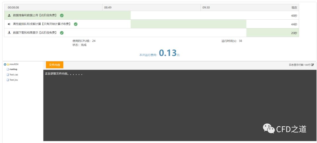 计算完毕后如下图所示。本次计算共消耗48秒,花费0.13元,还算便宜。