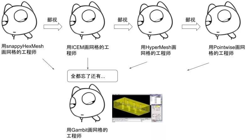前两天转发了一篇文章CFD仿真工程师的十八层鄙视链,发完之后总觉得负能量满满,觉得很有必要写篇文章解解毒。这篇文章对于CFD老鸟来说,自然可以当做笑话一笑了之,而对于初学者则可能会造成不必要的误读。