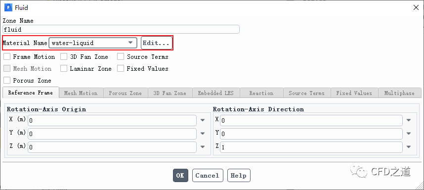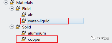 设置流体区fluidd的材料为water-liquid