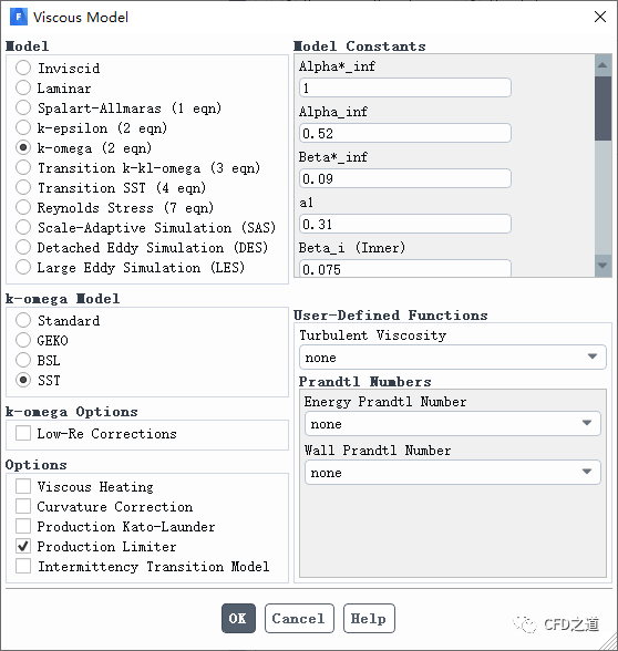 激活SST k-omega模型