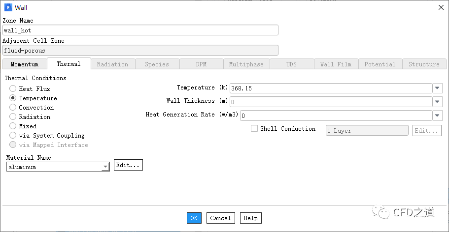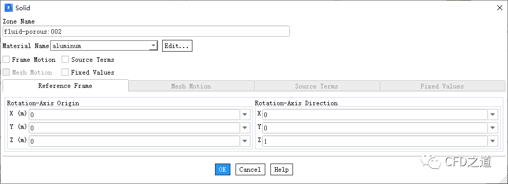 注:指定了多孔介质热模型为Non-Equilibrium后,会自动生成一个固体区域