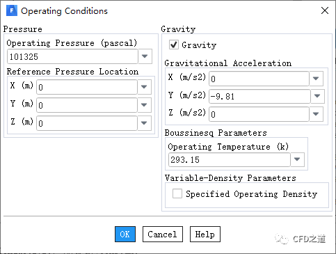 注:本案例采用Boussinesq假设,因此操作密度无需设置。