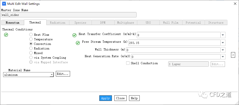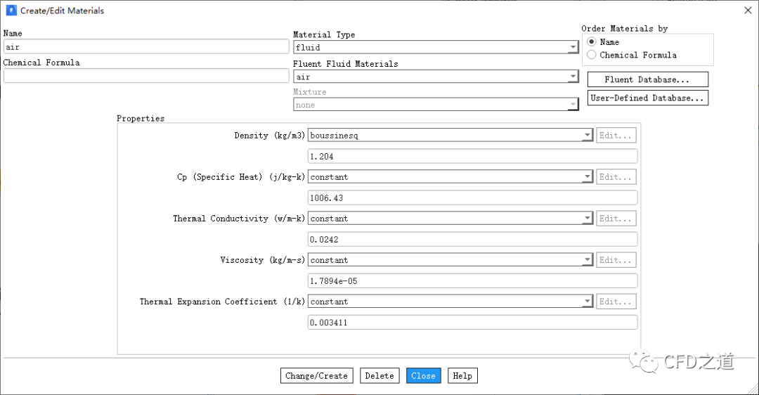 注:对于理想气体,热膨胀系数等于1/T。本案例中参考温度293.15,因此热膨胀系数为1/293.15=0.003411。对于层流流动,精确的热导率及粘度极为重要。