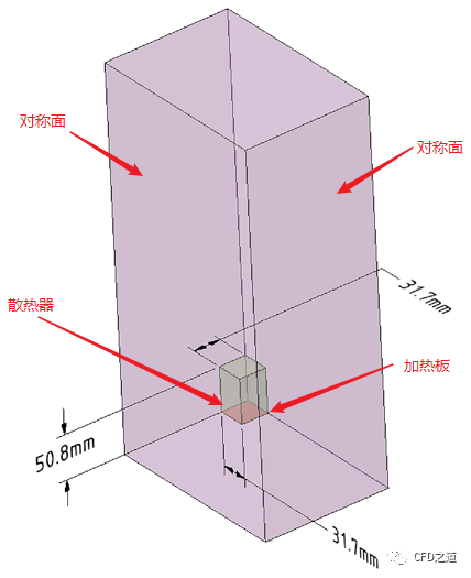 铝质泡沫散热器(63.4mm×63.4mm×50.8mm,图片尺寸对称)安装在外壳的受热表面上,考虑空间中的温度分布。