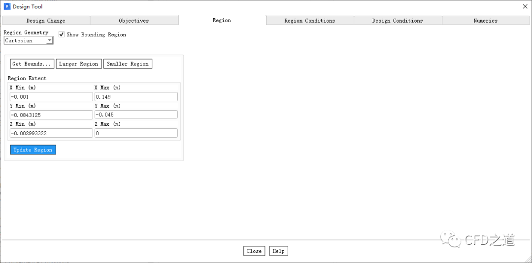 进入Region标签页,如下图所示设置参数,控制网格可变区域