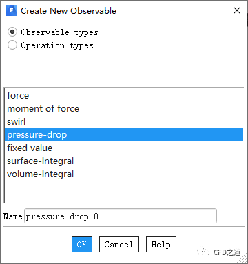 选择列表项Pressure-drop,采用默认名称,点击按钮OK弹出对话框