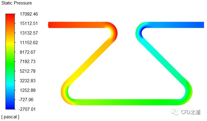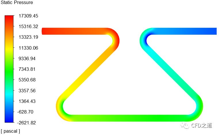 统计进出口压力,如下图所示,可得到总压降为16270 Pa。