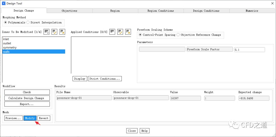 好像并没有减小多少,可以重复上面的步骤,持续优化几何形状以减小压降。本例并未考虑制造约束方面的问题,实质上在定义网格变形时是可以对变形方式进行约束的,有兴趣的道友不妨一试。