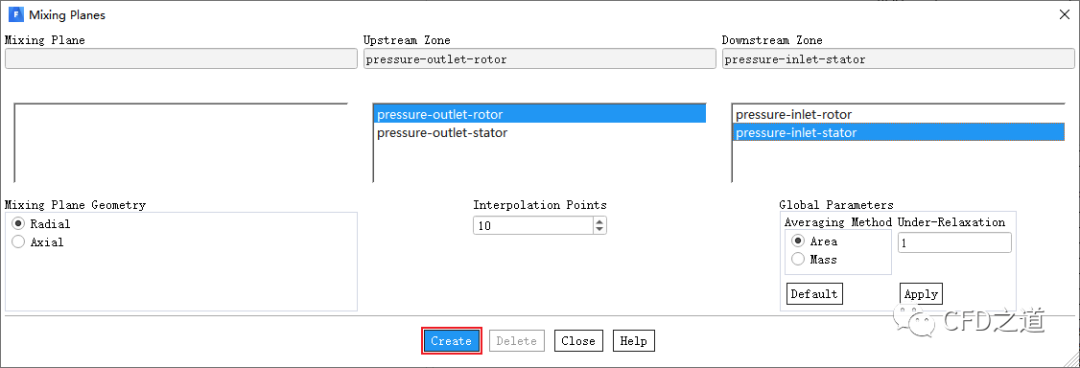 点击按钮Mixing Planes…打开混合平面设置对话框