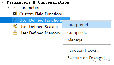 右键选择模型树节点User Defined Functions,点击弹出菜单项Interpreted…打开解释对话框