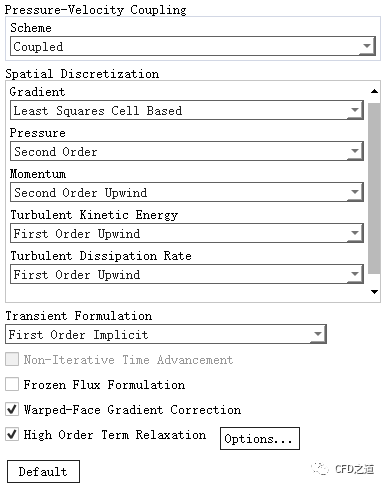 双击模型树节点Methods,右侧面板中设置Scheme选项为Coupled -