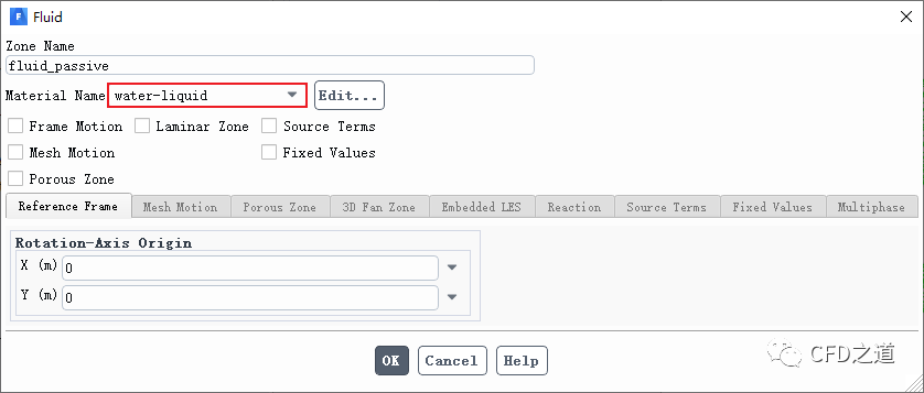 指定计算区域fluid-passive的材料介质为water_liquid