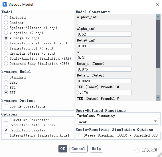 如图所示采用SST k-omega湍流模型