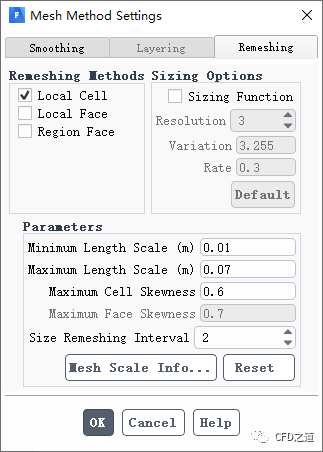 激活Dynamic Mesh,选择参数Smoothing及Remeshing -