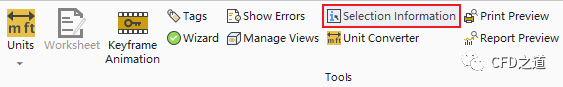 选择Home → Tools按钮Selection Information,选中图形窗框中的几何模型