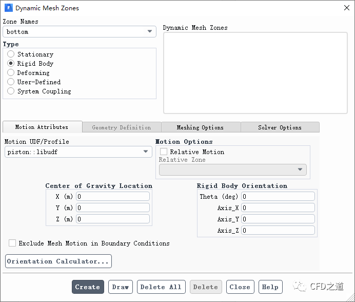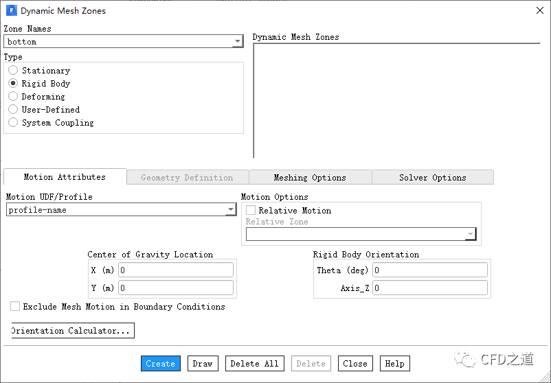 指定边界Bottom为Rigid Body,指定Motion UDF/Profile为profile-name