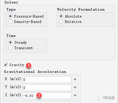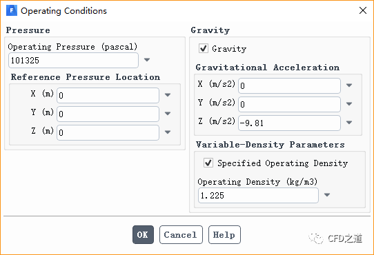 激活选项Specified Operating Density,设置Operating Density为1.225 kg/m3