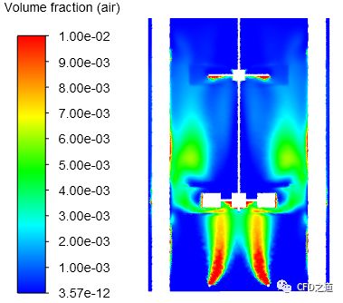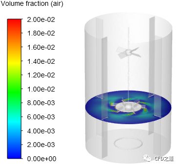 本案例利用Fluent中的欧拉多相流模型模拟空气喷雾至充满水的反应器内的流场分布。