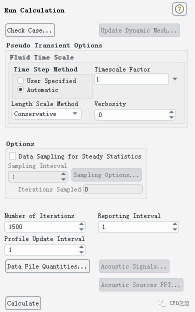 选择模型树节点Run Calculation,右侧面板中设置Number of Iterations为1500