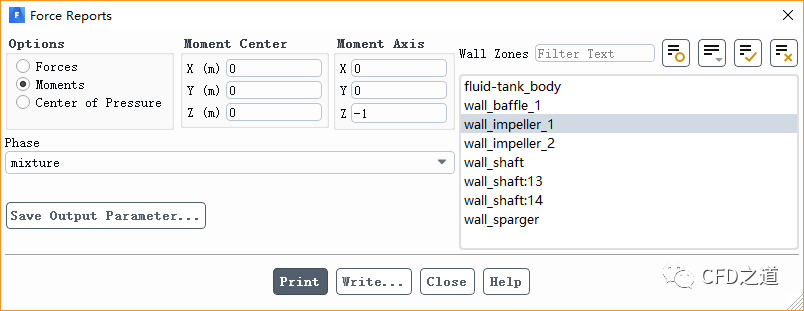 如下图所示,激活选项Moments,设置Moment Center为(0 0 0),设置Moment Axis为(0 0 -1)