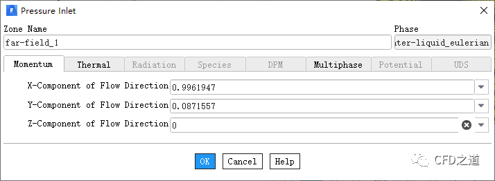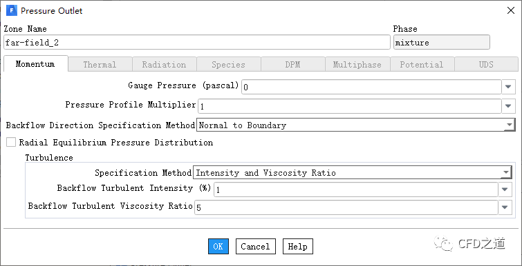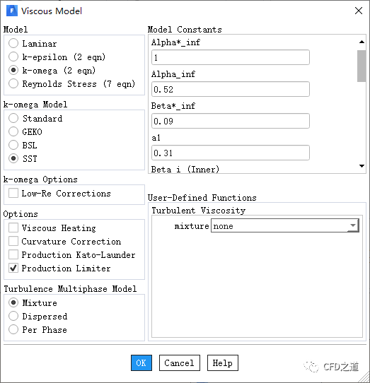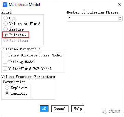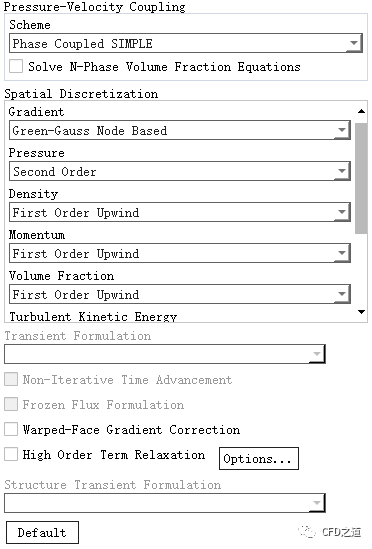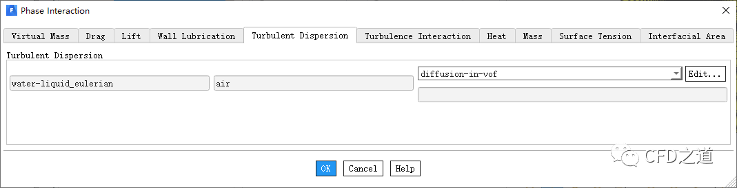 相间作用中湍流分散力模型选择diffusion-in-vof,弹出的对话框采用默认设置