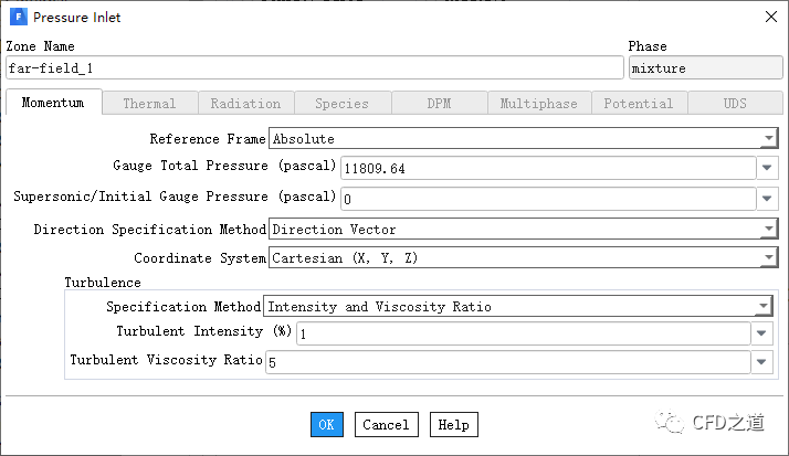 设置入口混合相总压为11809.64 Pa,如下图所示