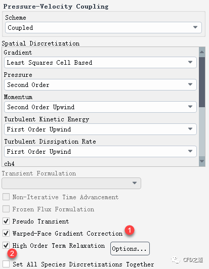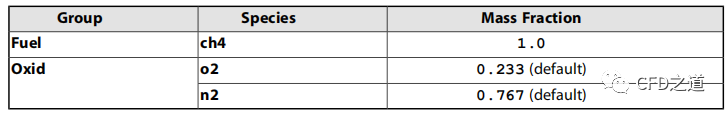 注:这里采用的是Fluent系统中集成的甲烷-空气化学反应。如果要计算系统中所没有的化学反应,则需要在材料属性中自定义化学反应。