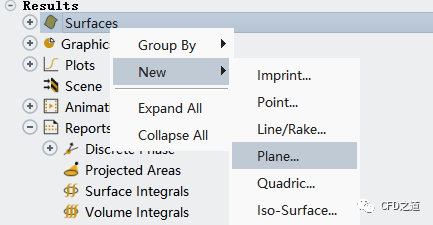 右键选择模型树节点Surface,点击弹出菜单项New → Plane…弹出新建平面设置对话框