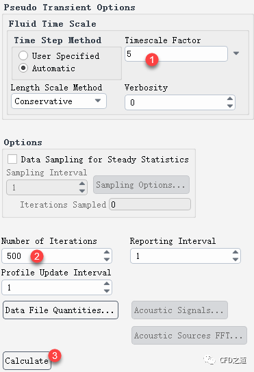 双击模型树节点Run Calculation,右侧面板上设置Timescale Factor为5,设置Number of Iterations为500,点击按钮Calculate开始计算