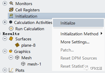 右键选择模型树节点Initialization,点击弹出菜单项Initialize进行初始化