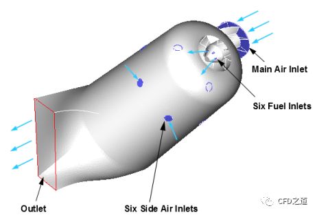 本案例要计算的模型是一个如下图所示的燃烧室。