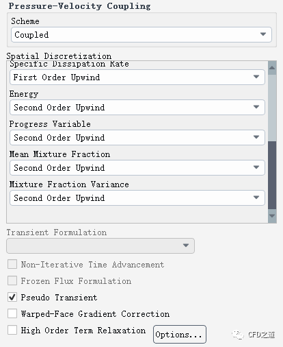 注:激活选项Linearize Source Terms能够提高数值稳定性。允许使用更大的时间步长和更大的松弛因子。