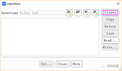 点击按钮Injections…弹出设置对话框,如下图所示,点击按钮Create创建入射器