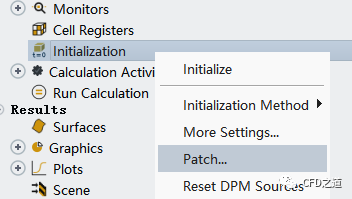 鼠标右键选择模型树节点Initialization,点击弹出菜单项Patch…